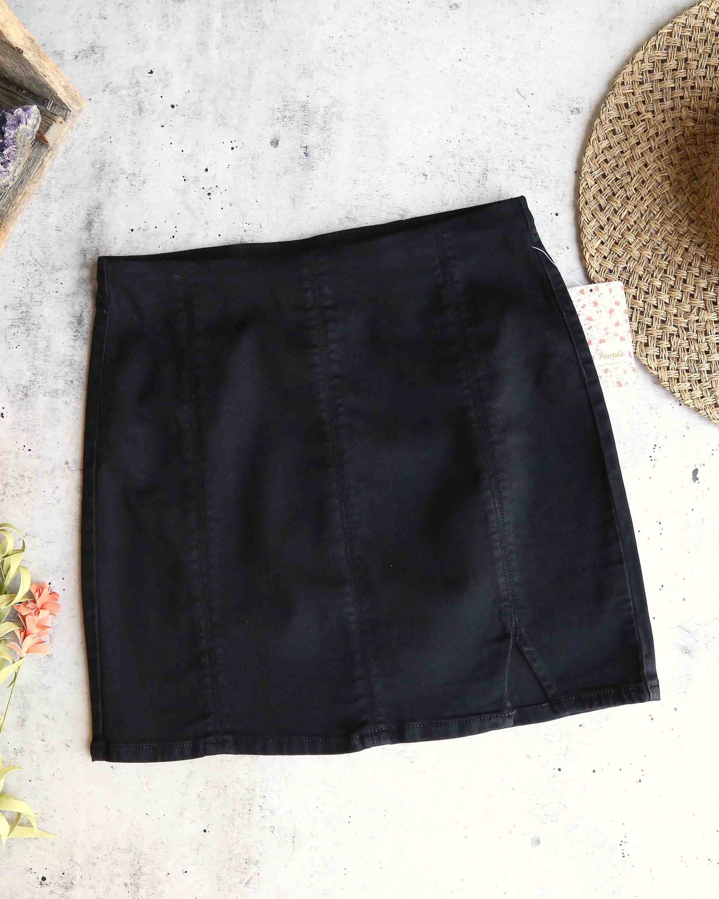 Add instant appeal to your look by rocking this cute mini skirt from Free People, fitted to perfection and styled with visible seams and a single front slit.