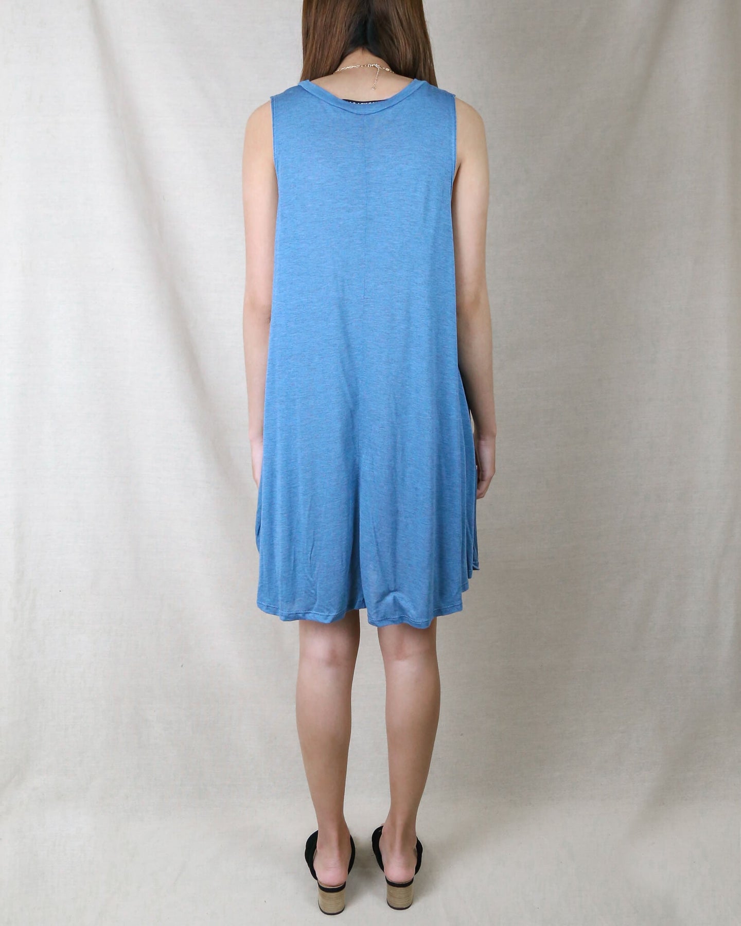 Basic Sleeveless Burnout Swingy Tank Dress in Heather Blue