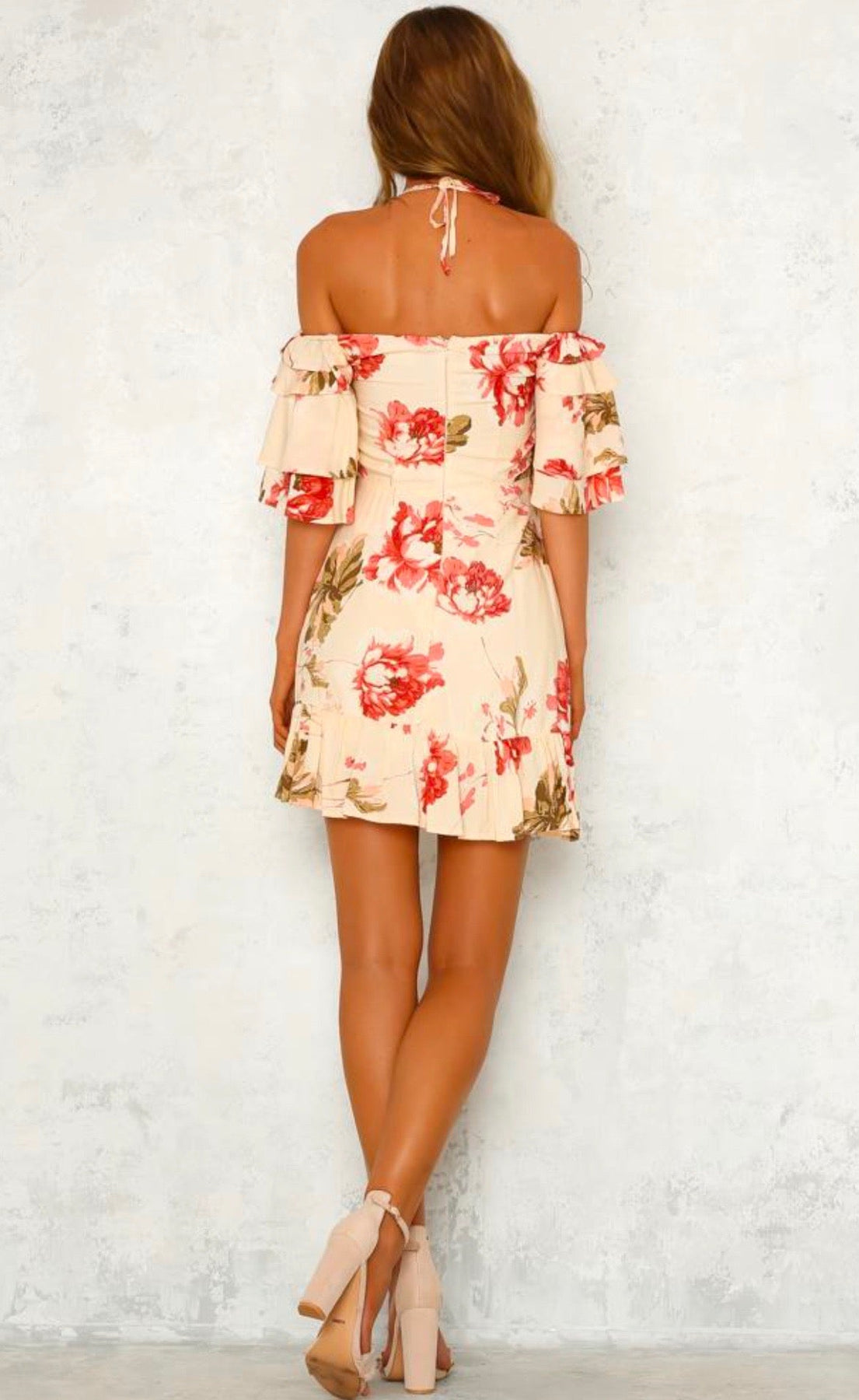 Waking Up To You Floral Halter Dress - Beige/Pink